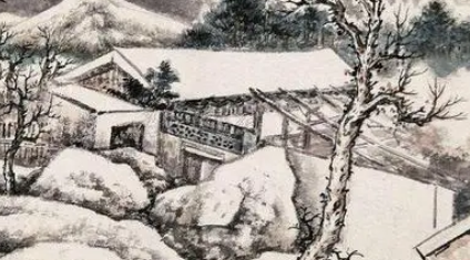 起句从听觉形象写起。一个秋天的黄昏,诗人路过一座山村,远远便闻到山涧的潺潺流水声:“数里闻寒水”。在“数里”的范围内能清晰地听到细微的水声,可见山区的寂静凄冷。而映在眼帘的是稀稀落落的人家──“山家少四邻”。这一听觉形象和视觉形象相互衬托,生动地渲染出山村的萧索而冷落的氛围。首联点题,作者用淡墨勾勒出一幅荒凉的山村远景。