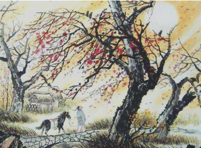“古道无人行,秋风动禾黍”,该走的,都已经回了故乡;流浪的,也早已窜入了欢乐场。一场秋雨一场凉,秋风掀动离人的衣裳。繁荣的古道,如今只剩残阳斜照,几匹老马踢踢踏踏,不知欲奔何方。